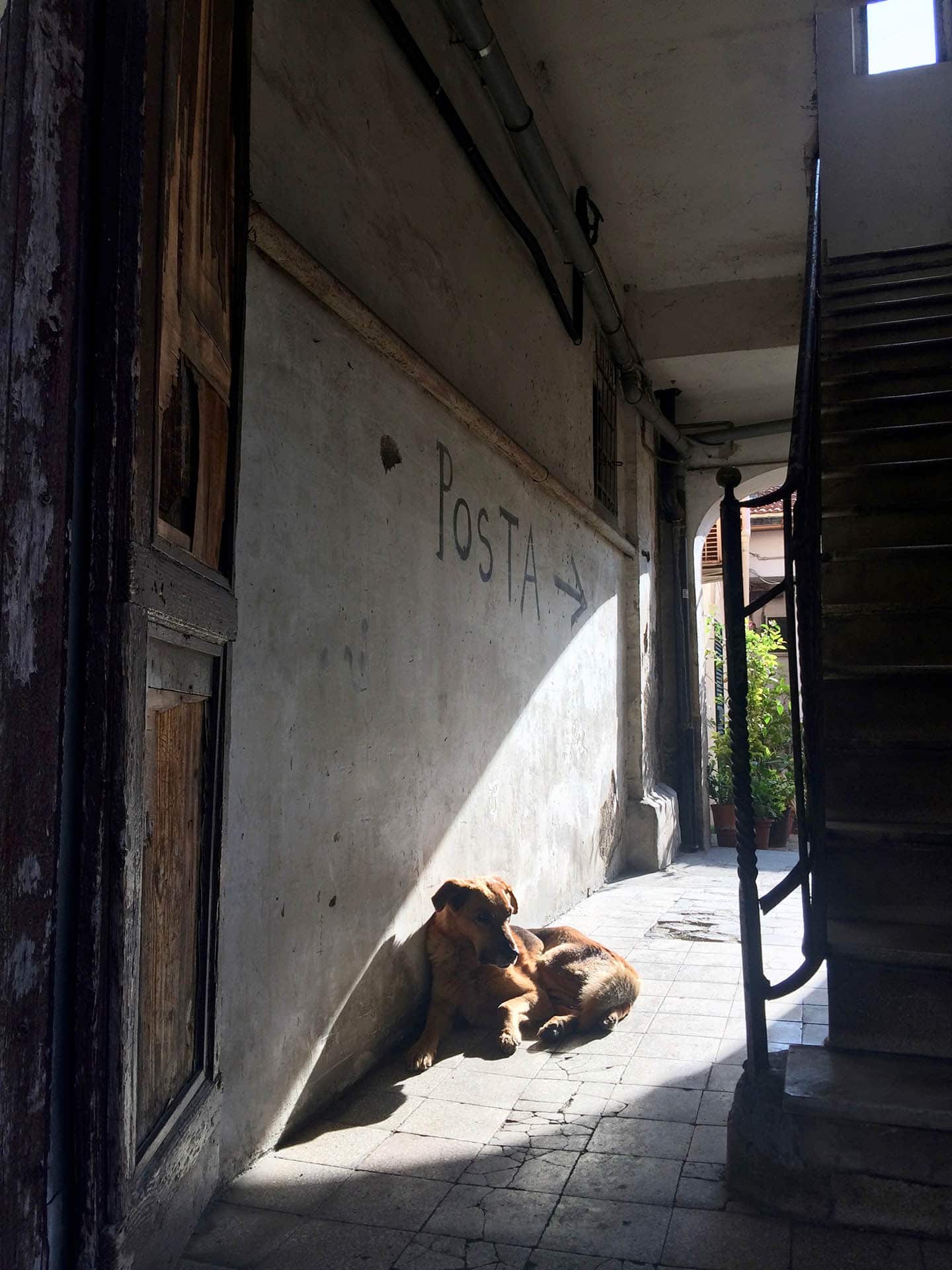 Passando su via dei quintili se si curiosa dietro l’entrata dimessa e ombreggiata da un vecchio leccio si scorge un patio dai muri bianchi e un po’ scrostati colorato da piccole piante fiorite sapientemente sistemate, è qui che abita il cane Cecio, il cane Cecio avrà sicuramente un nome ma la sua caratteristica principale è appunto la cecitudine da non confondere affatto con la cecità.